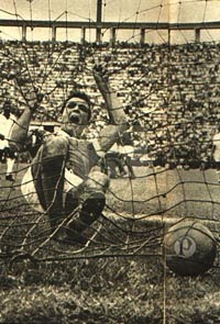 Santos x Corinthians em 1958, jogaram pelo campeonato paulista. Jogo vencido pelo Santos por 1 x 0. Pelé dava seus primeiros passos em sua gloriosa carreira, e o Pacaembu viu o seu nascimento para o futebol, na foto, Gilmar larga uma bola e Pelé de bico marca um dos seus primeiros gols no estádio, pois já estávamos em Novembro daquele ano e ele já tinha marcado outros gols no Pacaembu.